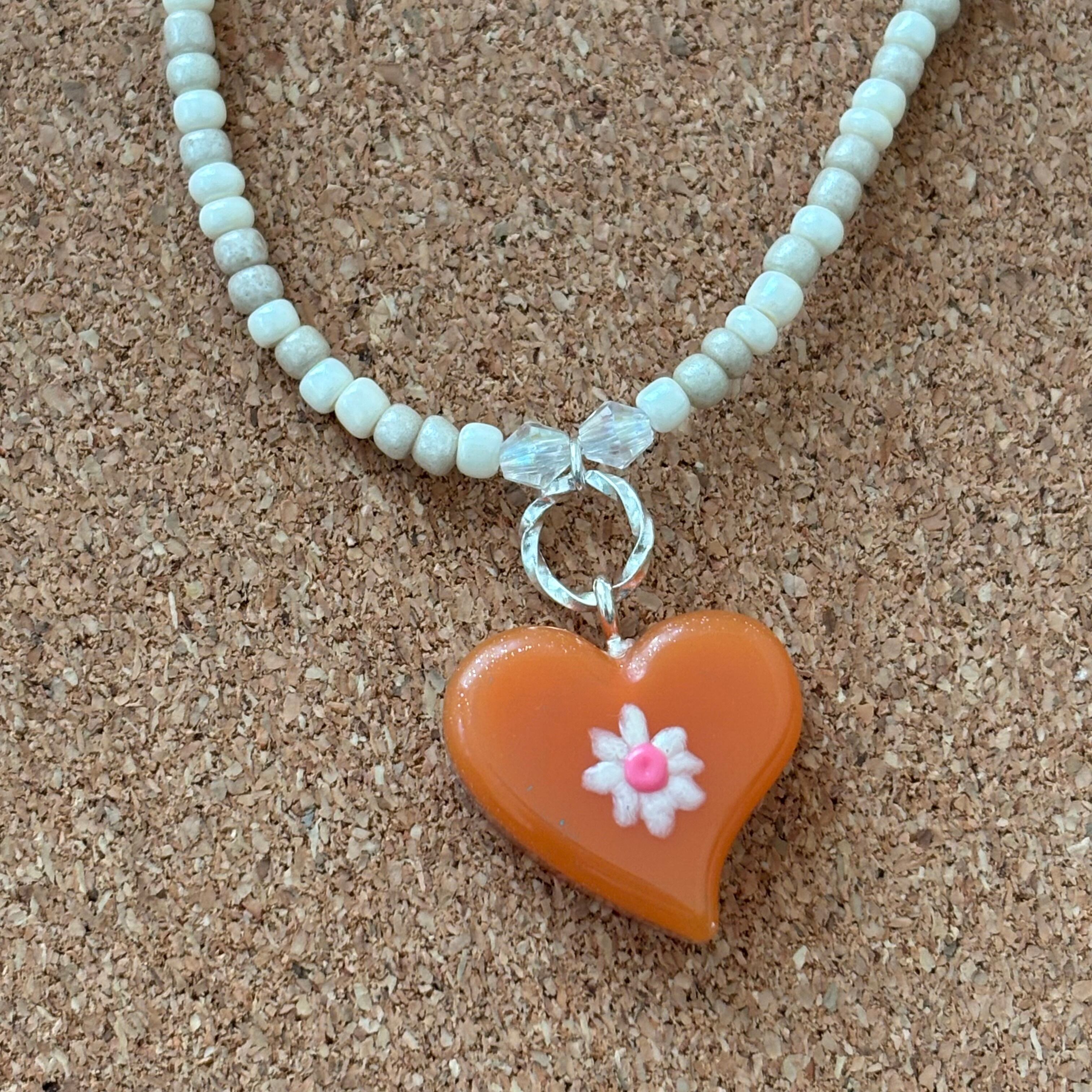 ハートのチャームは可愛いデイジーのお花がワンポイント♡